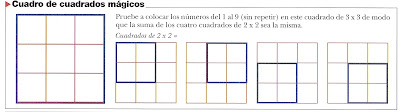 En el segundo, tomado en este caso del número 15 de julio de 1999. debemos colocar también las cifras del 1 al 9 en un cuadrado de 3x3, pero ahora lo que deben sumar igual son los cuadrados de 2x2 que podemos organizar.